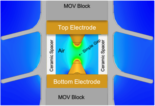 Acting as a high-speed, voltage-controlled switch, the series gap isolates the MOV disks from the line under normal conditions. When a transient over-voltage occurs, the gas in the gap sparks over in an instant, “closing” the switch and engaging the MOV disks.